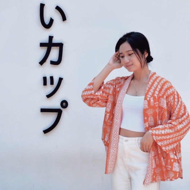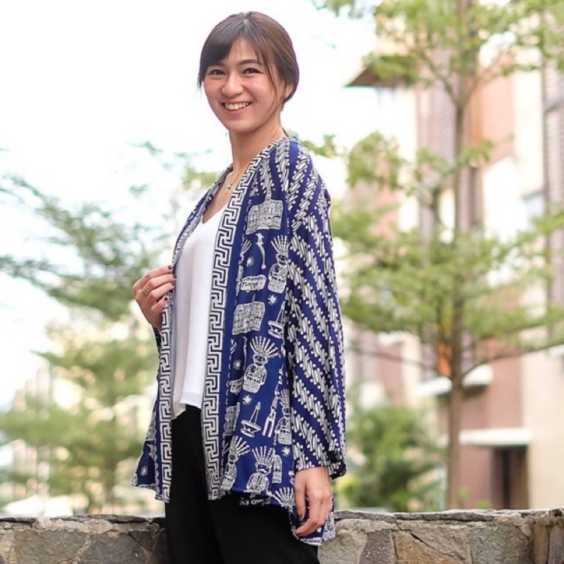 BATIK UNIVERSALKU - Cardigan Outer batik motif Ondel ondel Betawi Jakarta
