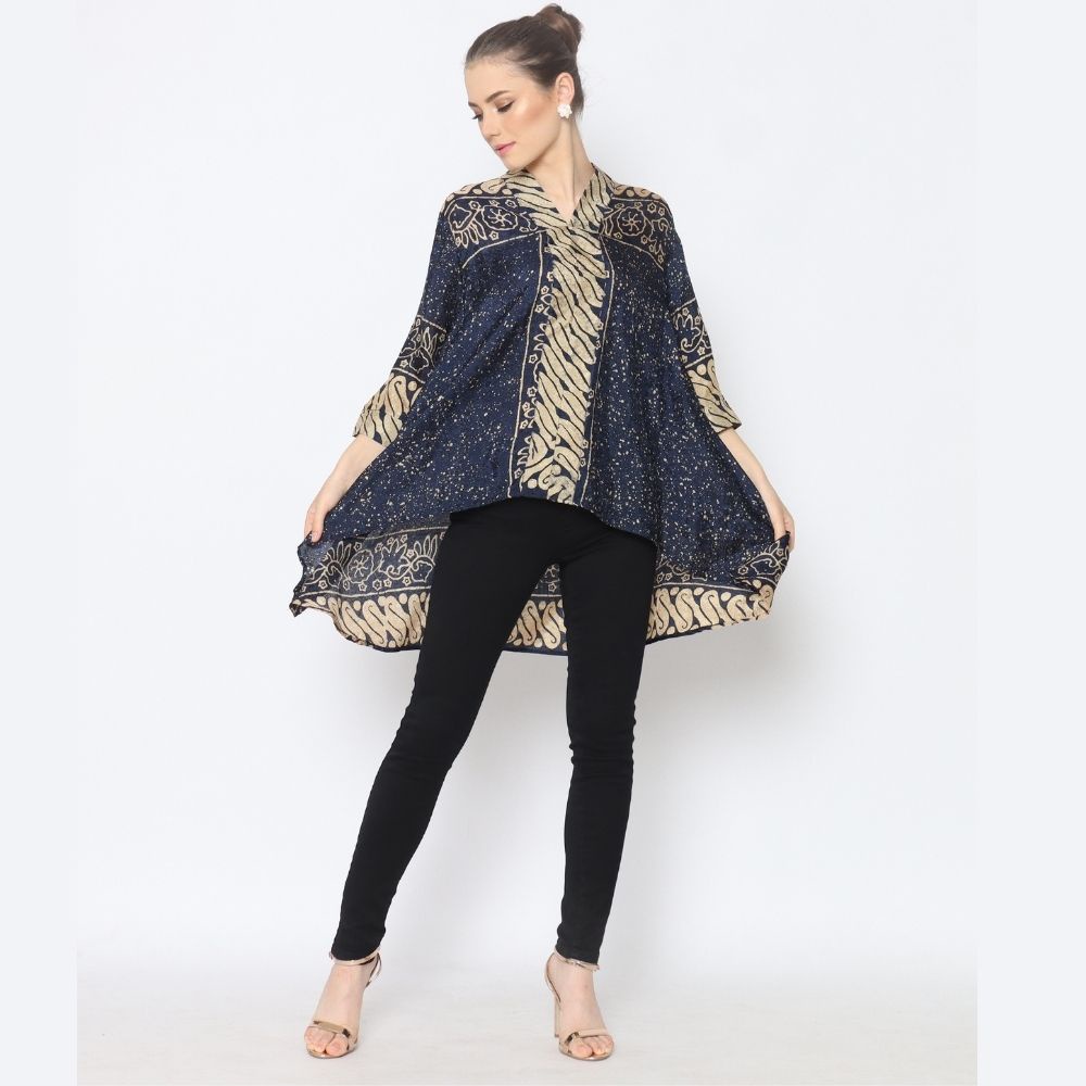 Rinjanie Batik - Blus Batik Wanita Kekinian - E Avon-Blouse Batik Azalea Kalong Kerah - Batik Abstrak - Batik Viscose
