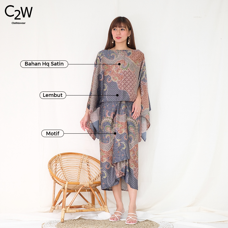 C2W Clothtowear Three In One Batik Wanita All Size 1 Set Rok dan Atasan Women's Clothes Plaid Skirt Satin 167-168-SBN