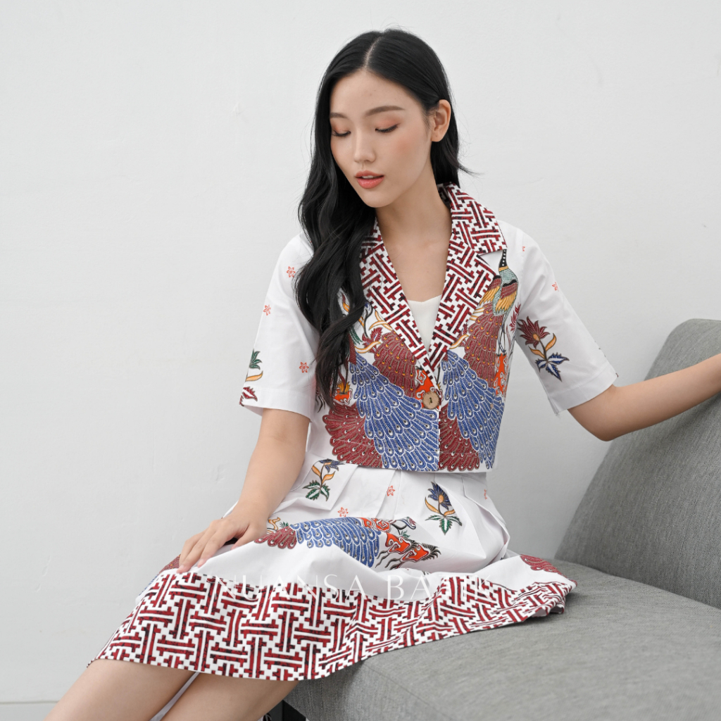 Nuansa Batik Setelan Batik Lengan Pendek Rok Batik Midi Bahan Katun Stretch