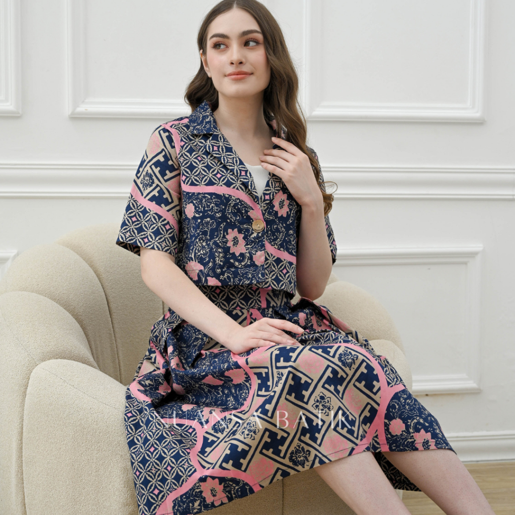 Nuansa Batik Setelan Batik Lengan Pendek Rok Batik Midi Bahan Katun Stretch