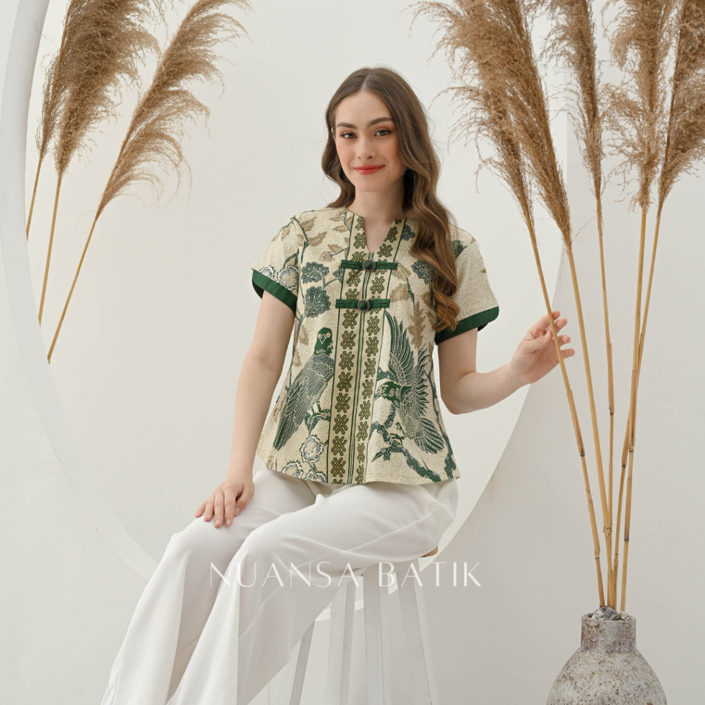 Nuansa Batik Blouse Batik Model Koin Lengan Pendek Bahan Katun Stretch