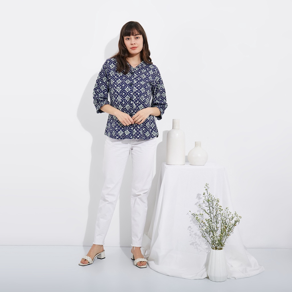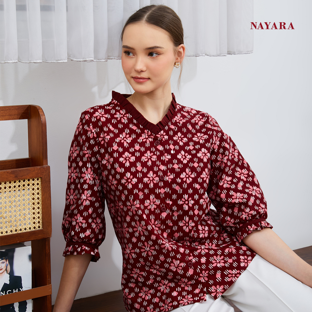 Nayara Seona Blouse Batik Cotton Kerah O Neck Fashion Wanita