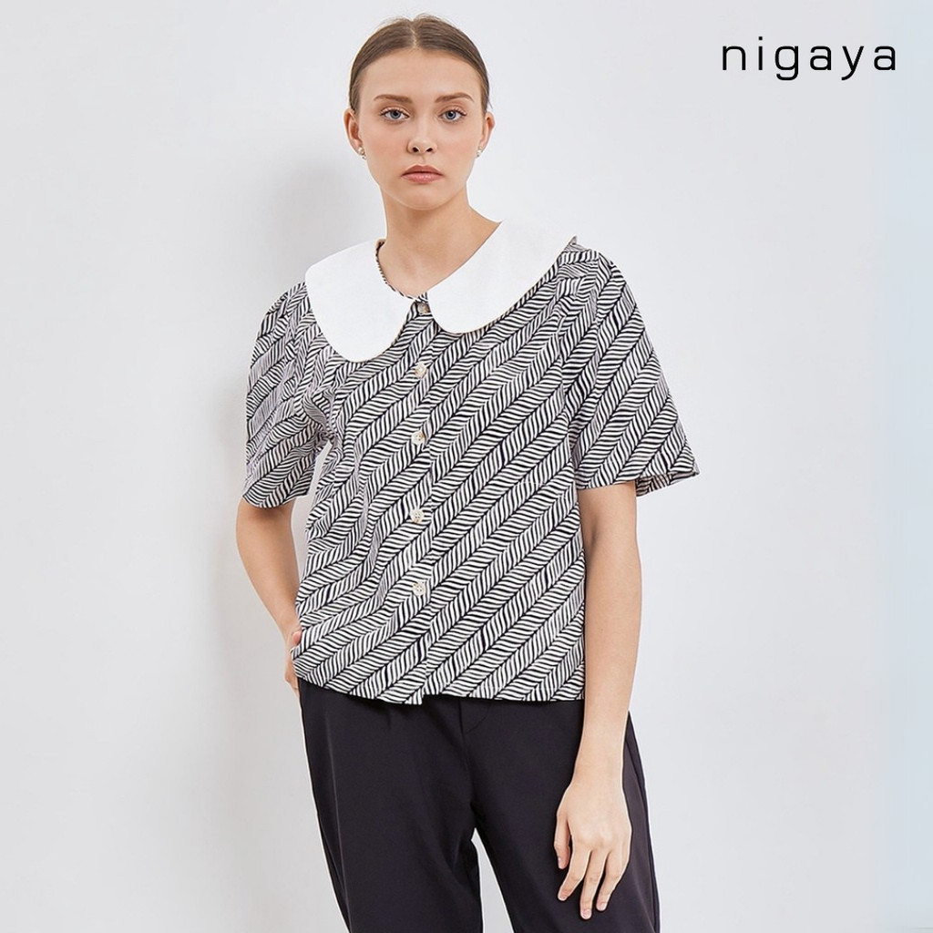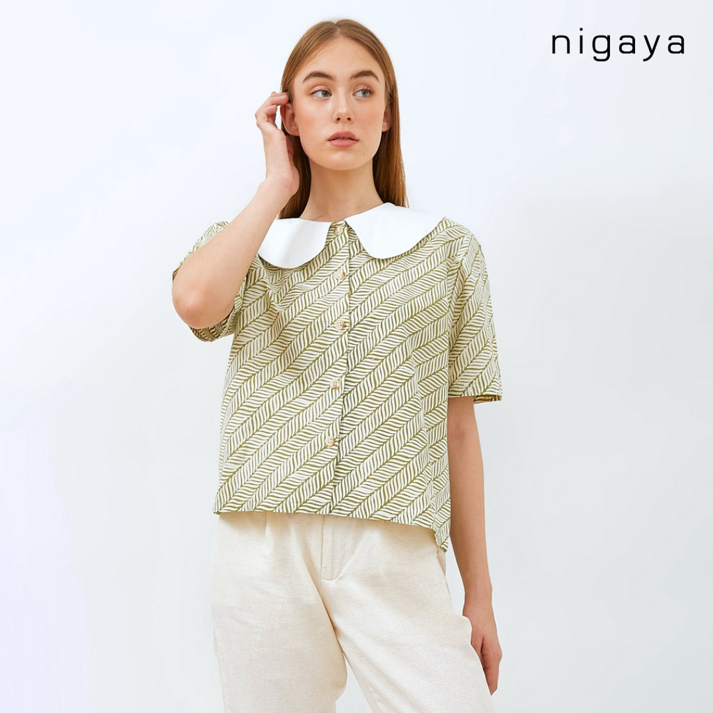 NIGAYA - New Melisa Top - Kemeja Blouse Atasan Blus Batik Premium Kerja Kekinian Lengan Pendek