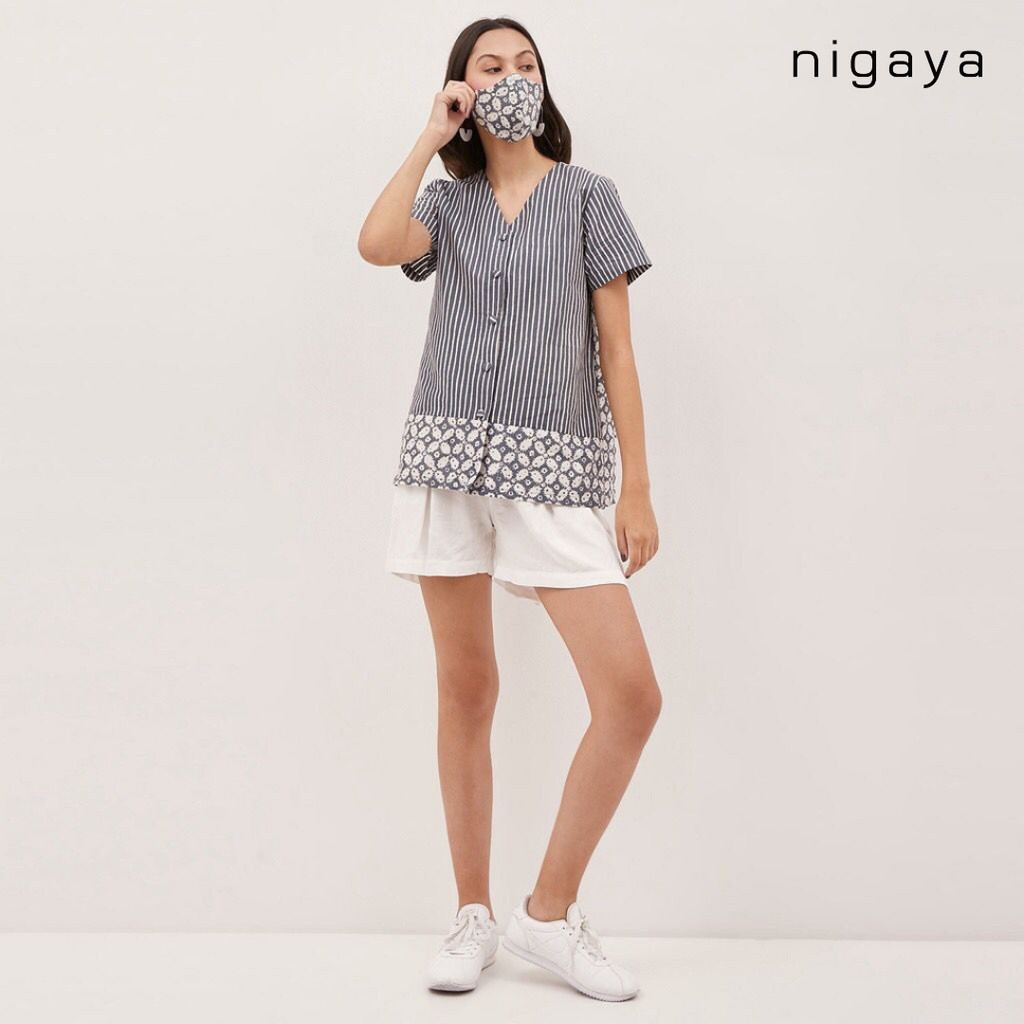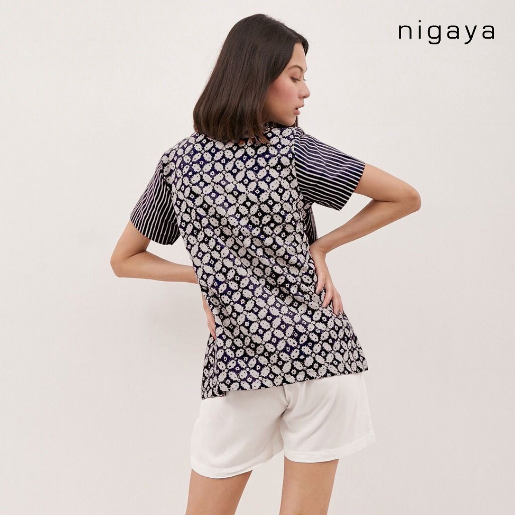 NIGAYA - Bessy Top- Blouse Baju Atasan Blus Batik Premium Wanita Kerja Modern Kekinian Lengan Pendek