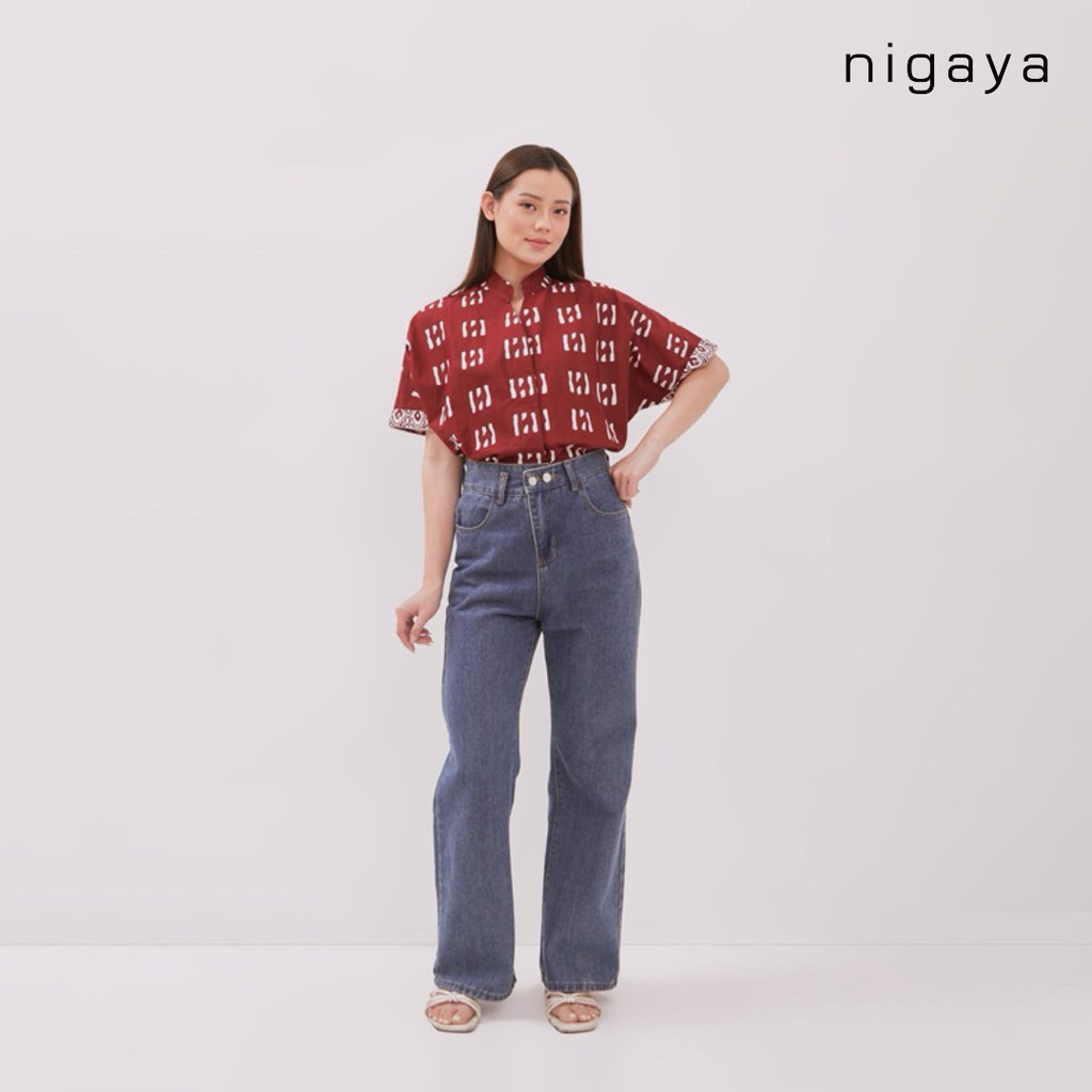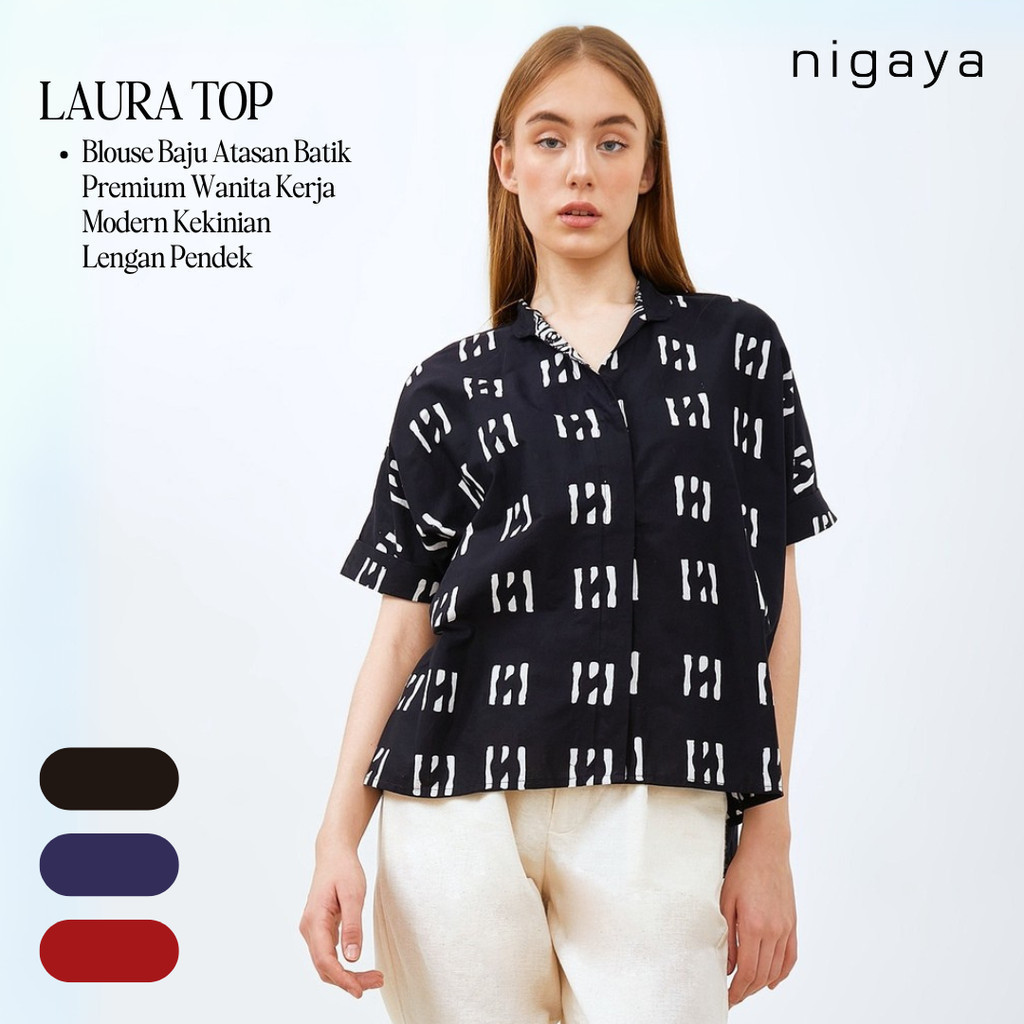 NIGAYA BATIK - LAURA T0P - Blouse Baju Atasan Batik Premium WanitaKerja Modern Kekinian LenganPendek