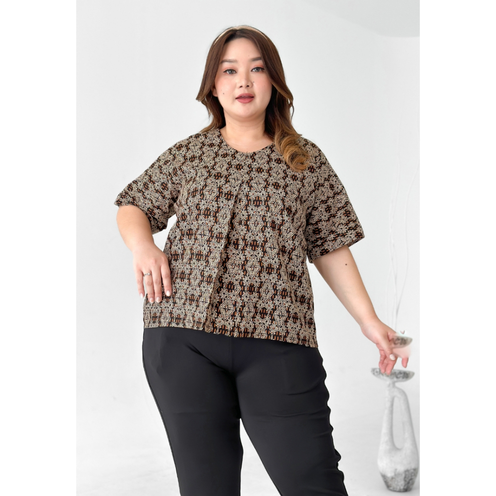 Xtramiles - Elisha Batik Top NEW | Atasan Batik Wanita Plus Size Big Size Katun Kerah Motif Pendek Ladies