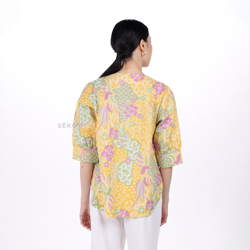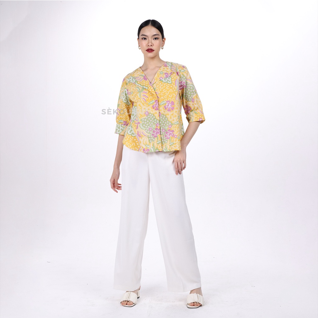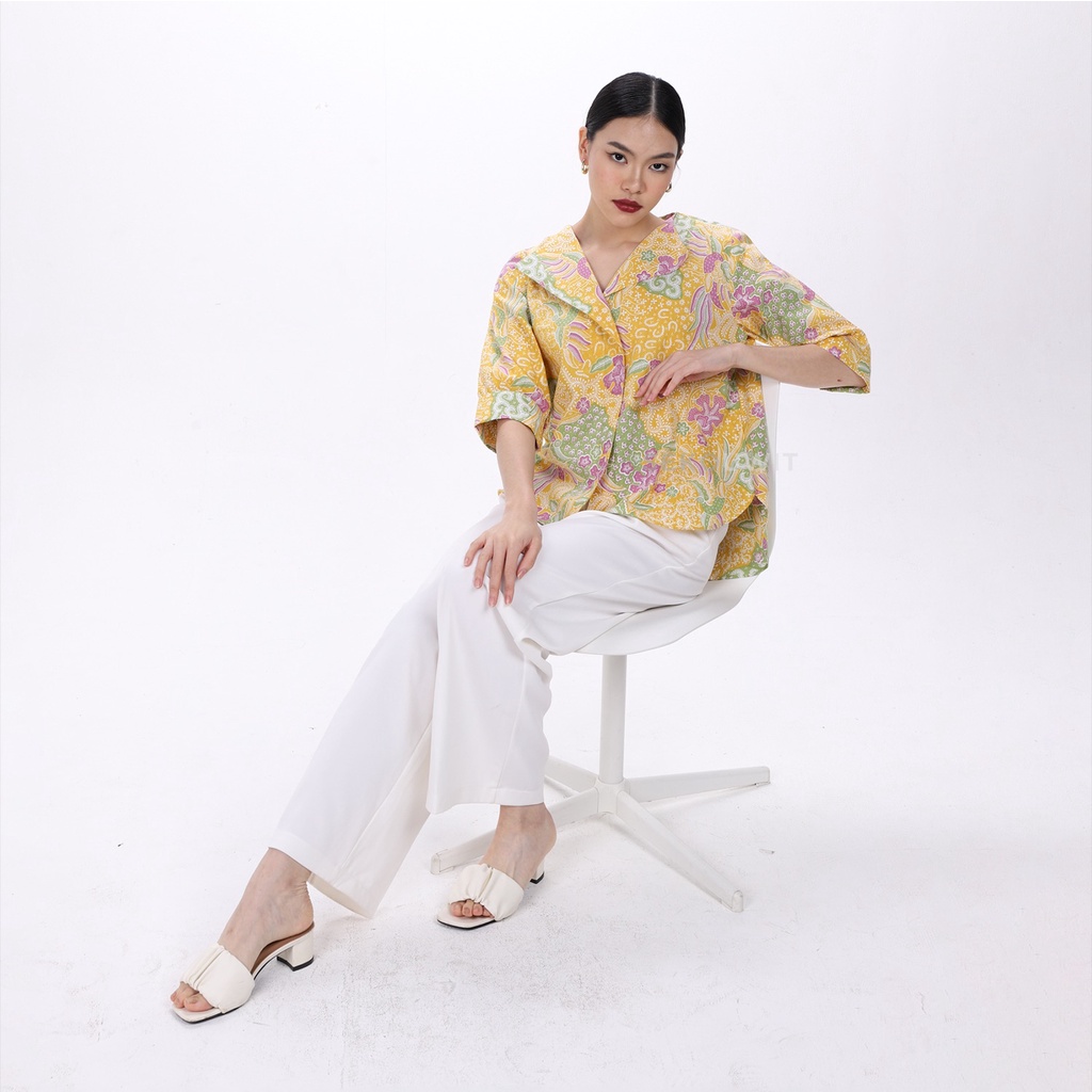 CATTLEYA Asymmetric Collar Blouse Top Batik HONG Sekouwit in Yellow