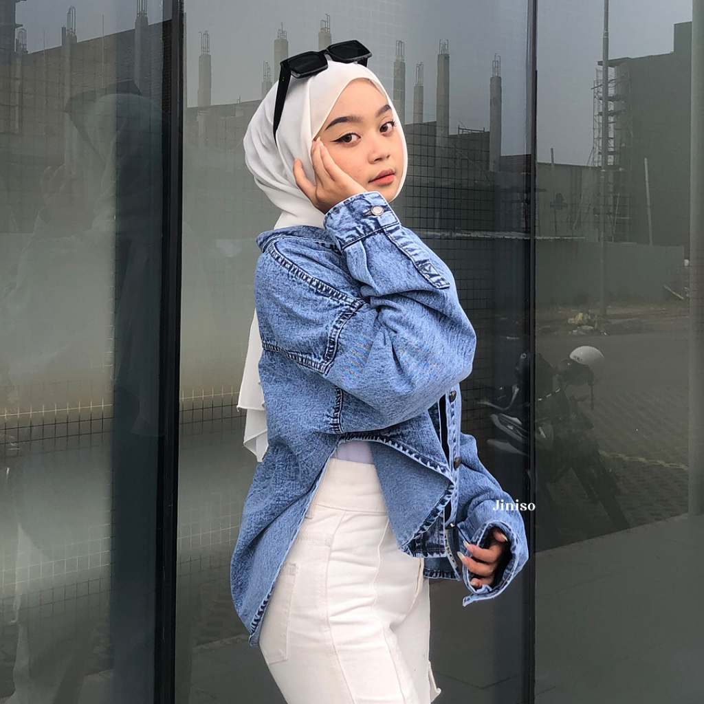 JINISO Jaket Crop Jeans Oversize Belle Basic Blue Acid