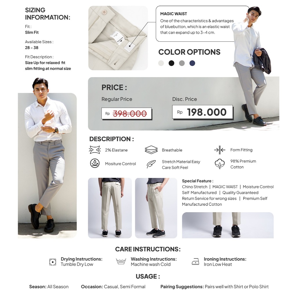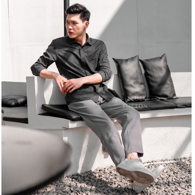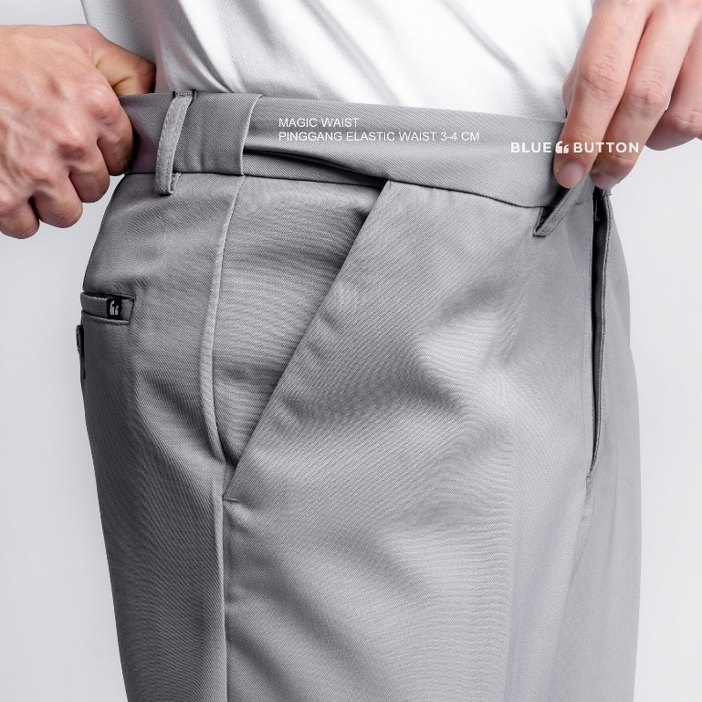 BLUEBUTTON Celana Bahan Pria Slim Fit Ankle Pants Air - Light Grey