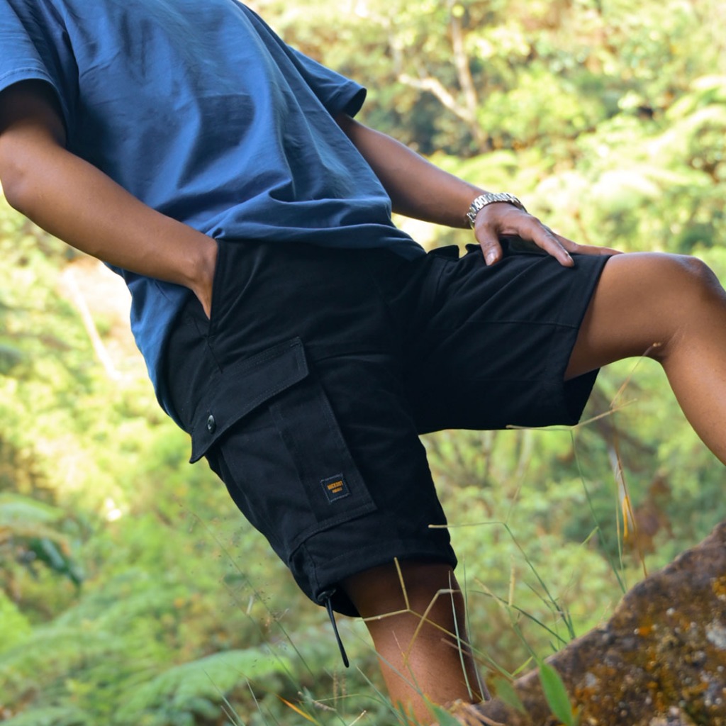 Mickout Ardent Shorts - Celana Pendek Cargo Katun Twill Pria Unisex - Hitam
