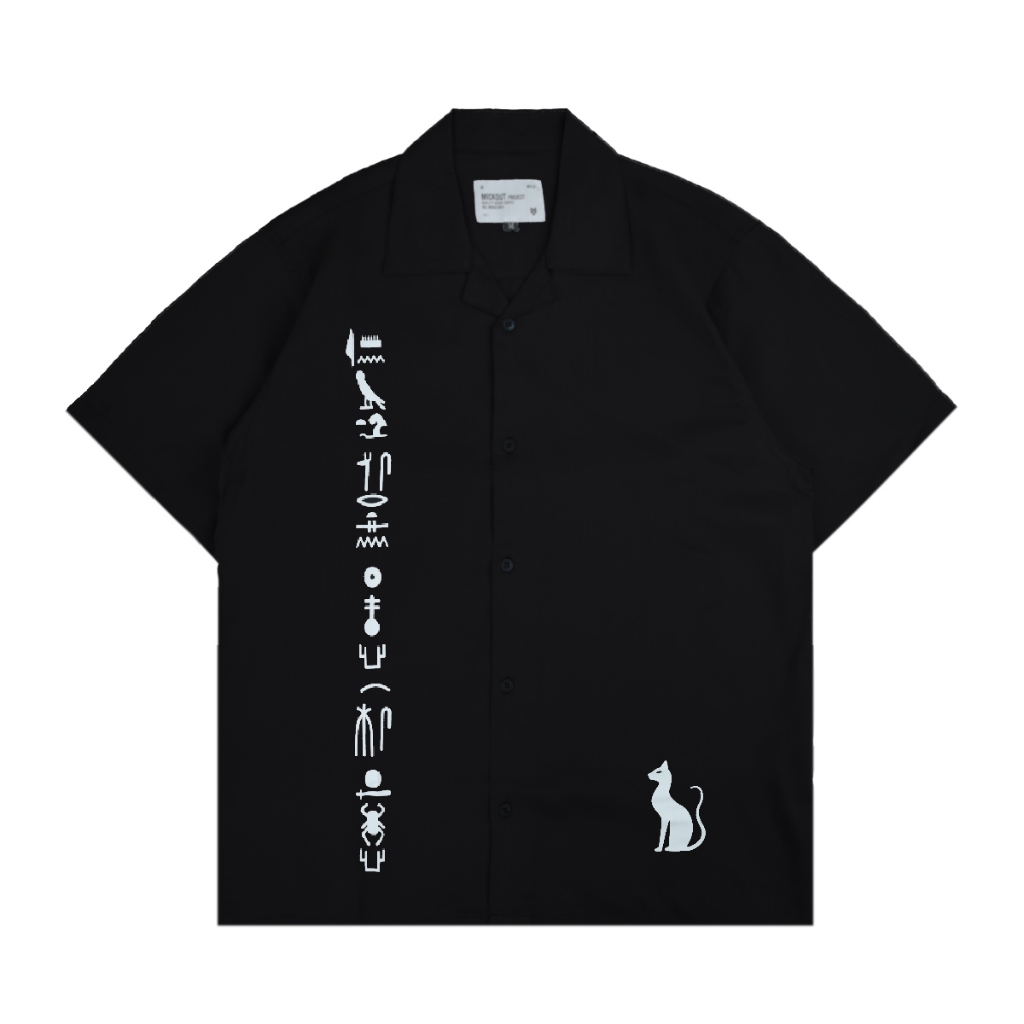 Mickout Egypt Casual Shirt - Kemeja Kasual Print Pria Katun Rayon Relaxed Fit Lengan Pendek - Hitam