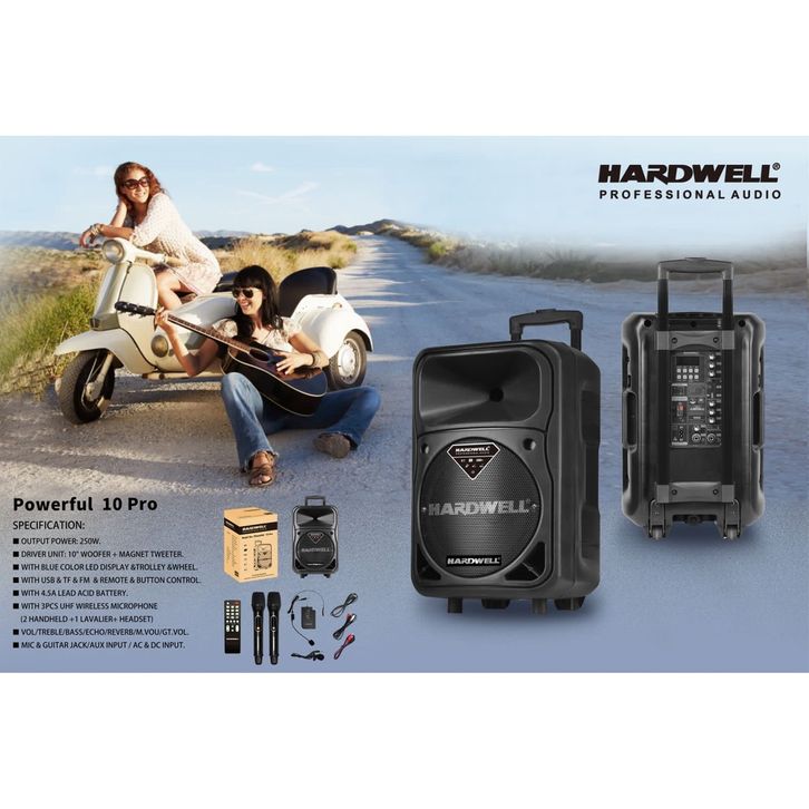SPEAKER PORTABLE 10 INCH HARDWELL POWERFUL 10 PRO 250 WATT BLUETOOTH
