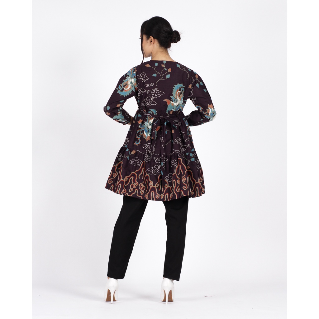 BATIK TRUSMI Atasan Wanita Tunik Batik Jumbo Mega Mendung Gunungan Kombinasi Ungu