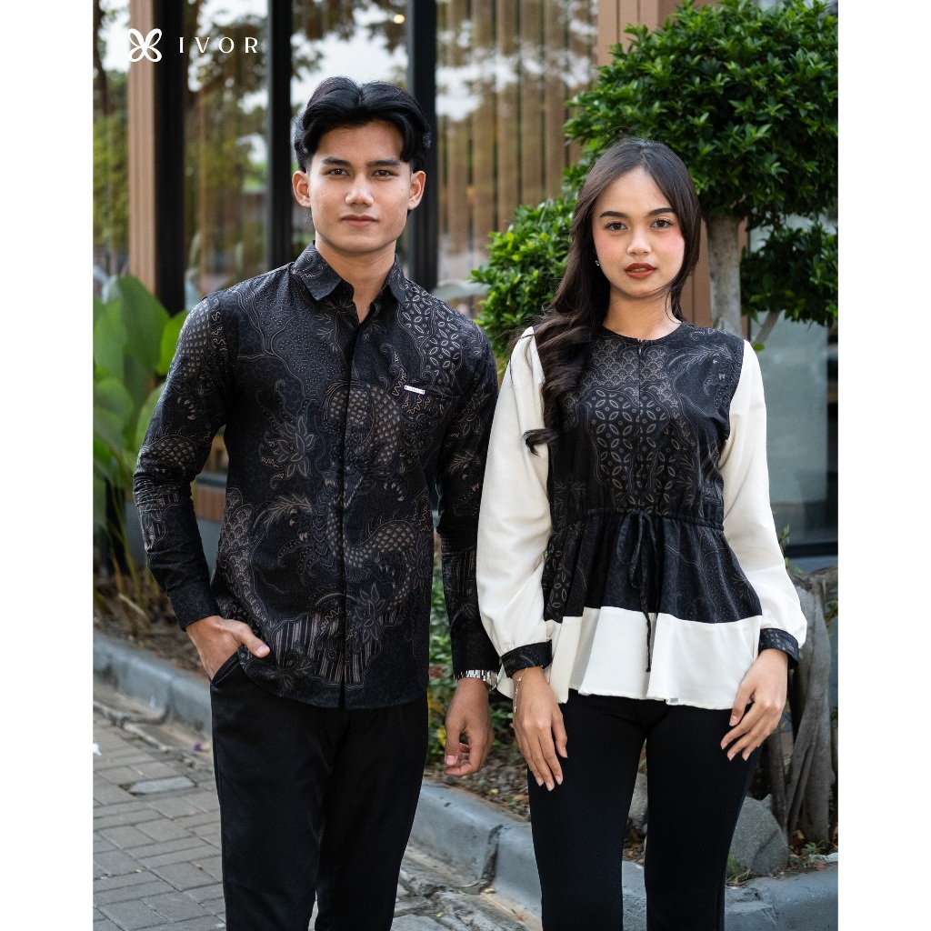 Laskala Batik Premium Nagara Couple Set Batik Pria dan Blouse Wanita Lengan Panjang