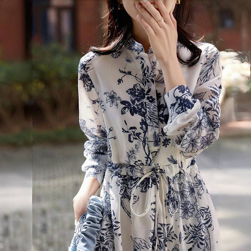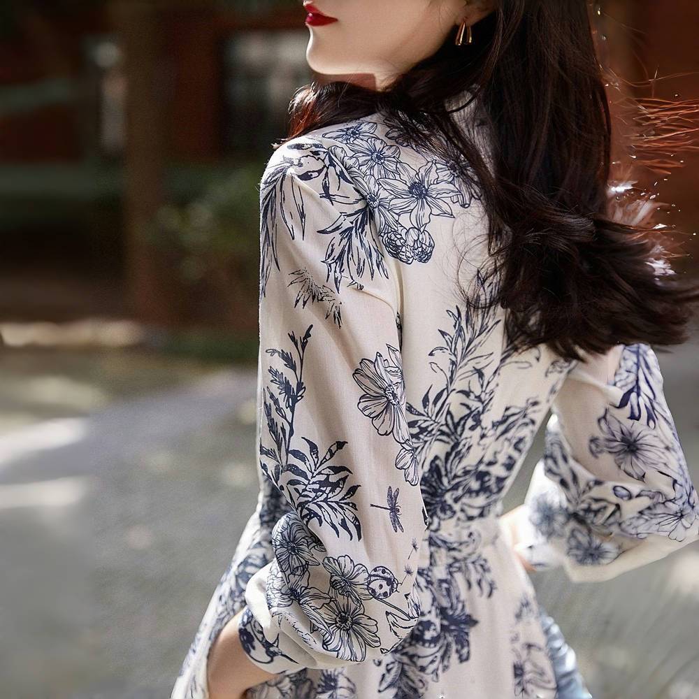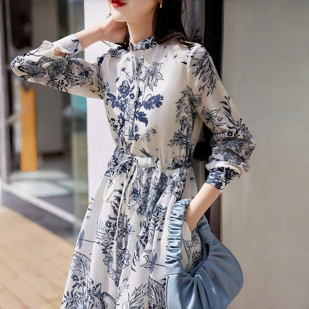Susana Mall Dress Panjang Bunga Biru Gaun Lengan Panjang Busui Friendly M654