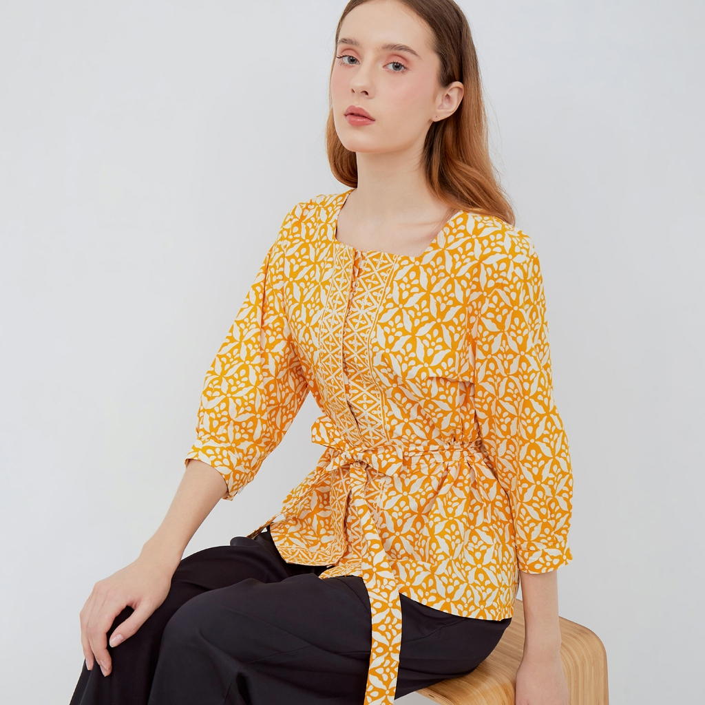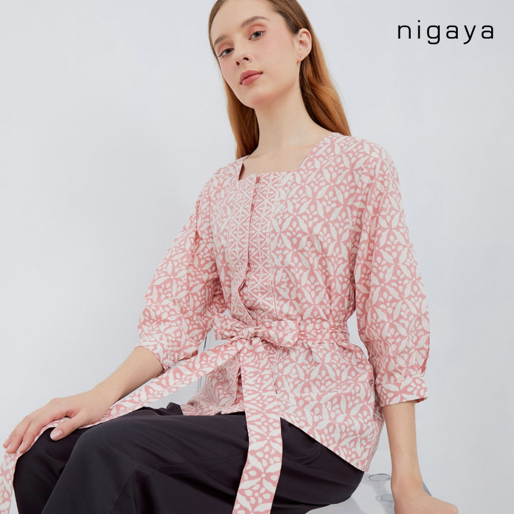 NIGAYA - Diana Top Long - Blouse Baju Atasan - Blus Batik Premium Wanita Kerja Modern Lengan Panjang