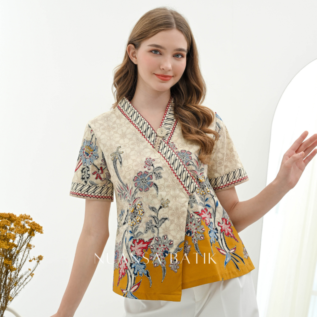 Nuansa Batik Blouse Batik Model Kimono Lengan Pendek Bahan Katun Stretch