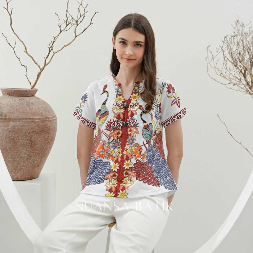 Nuansa Batik Blouse Batik Model Koin Lengan Pendek Bahan Katun Stretch