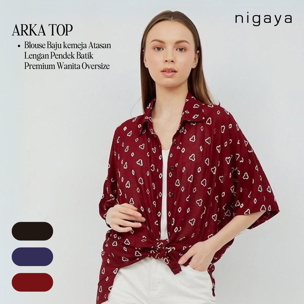 NIGAYA BATIK - ARKA T0P - Blouse Baju kemeja Atasan Lengan Pendek Batik Premium Wanita Oversize