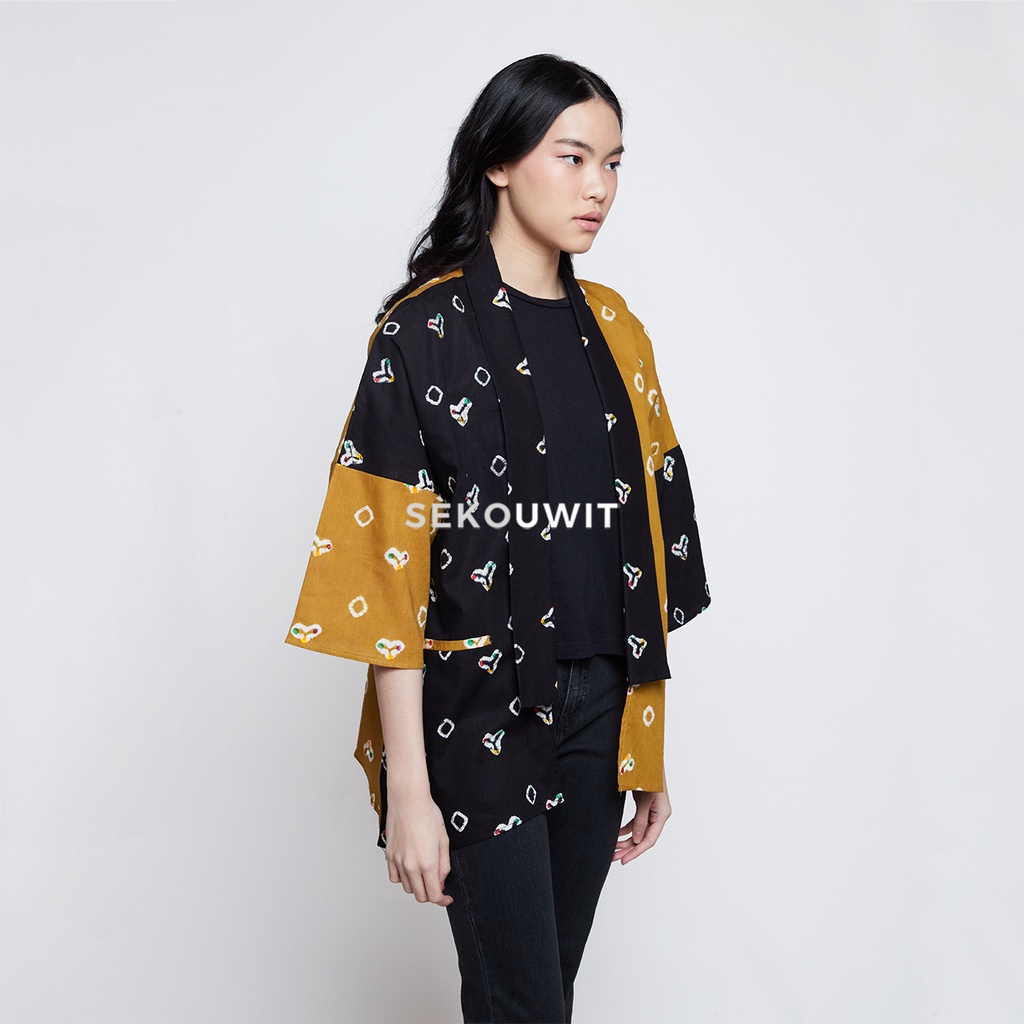 Zygo Batik Jumputan Long Sleeves Kimono Outer Sèkouwit In Brown & Black