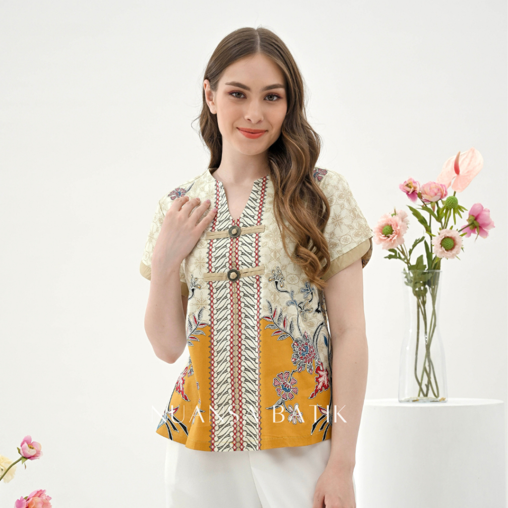 Nuansa Batik Blouse Batik Model Koin Lengan Pendek Bahan Katun Stretch