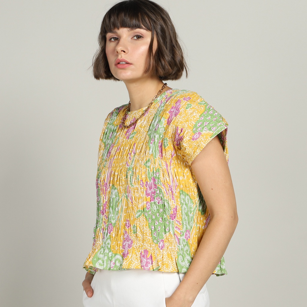 KALIKO Smock Detail Top Batik HONG Sekouwit in Yellow