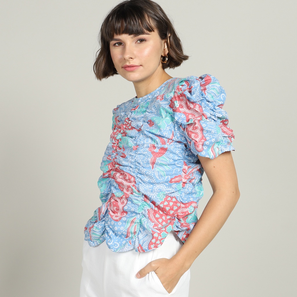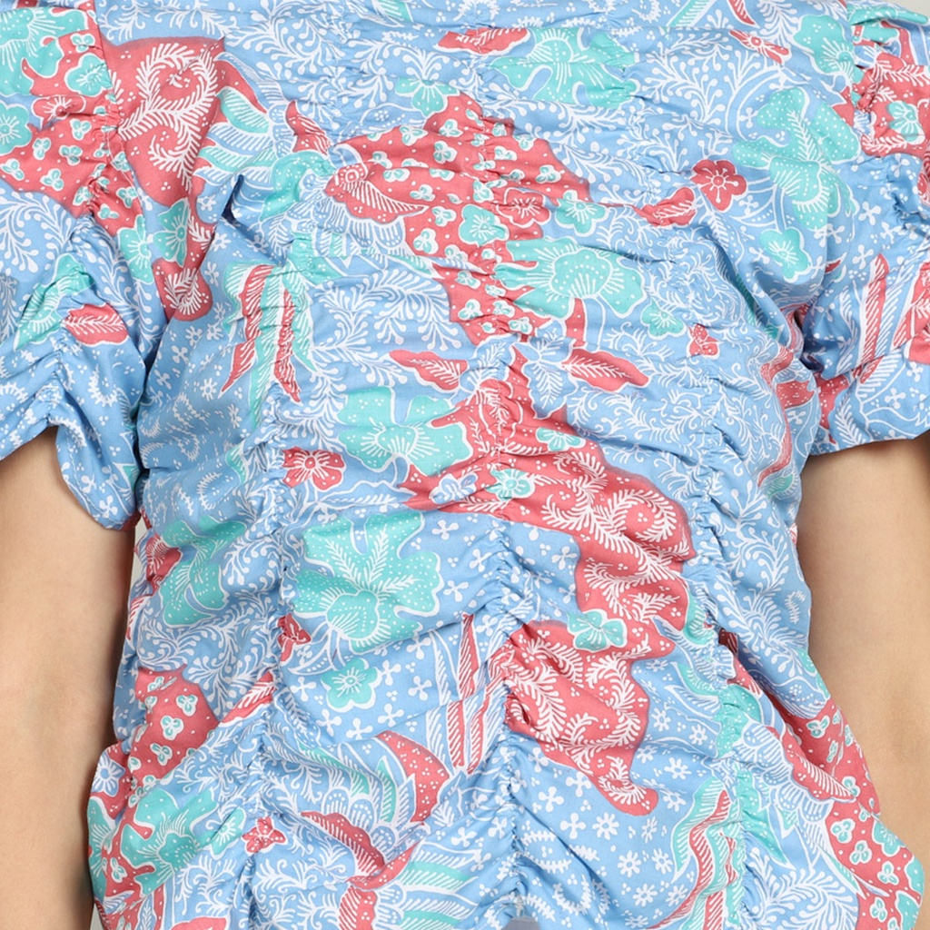 PEONY Smocked Blouse Batik HONG Sekouwit in Blue