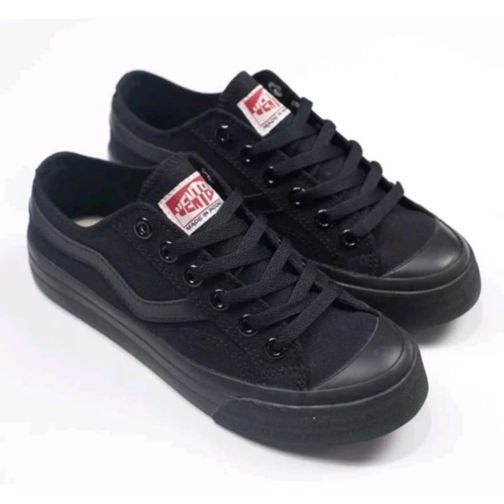 Gratis Kaos Kaki Sepatu Ventela Public Low Fullblack Sepatu Sekolah Pria Wanita Hitam Polos