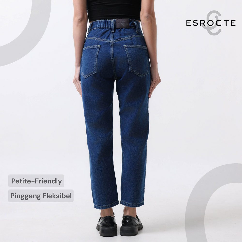 ESROCTE Rhea Pants | Celana Mom Jeans dengan Karet Belakang High-Waist Wanita –Navy– 26–38
