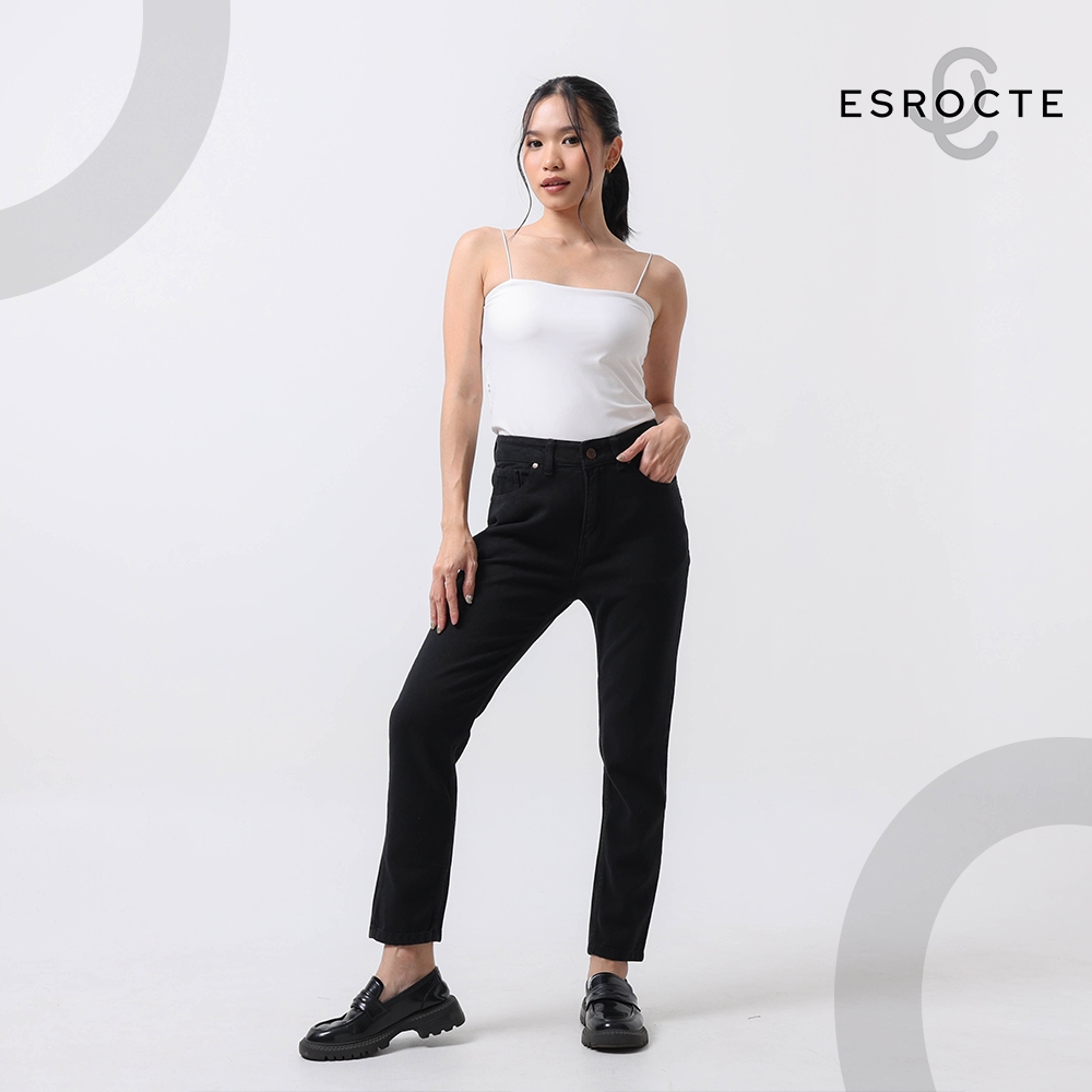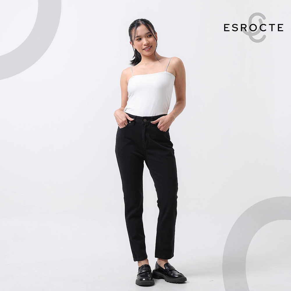 ESROCTE Zaya Pants | Celana Boyfriend Jeans High-Waist Wanita –Hitam– 26–38
