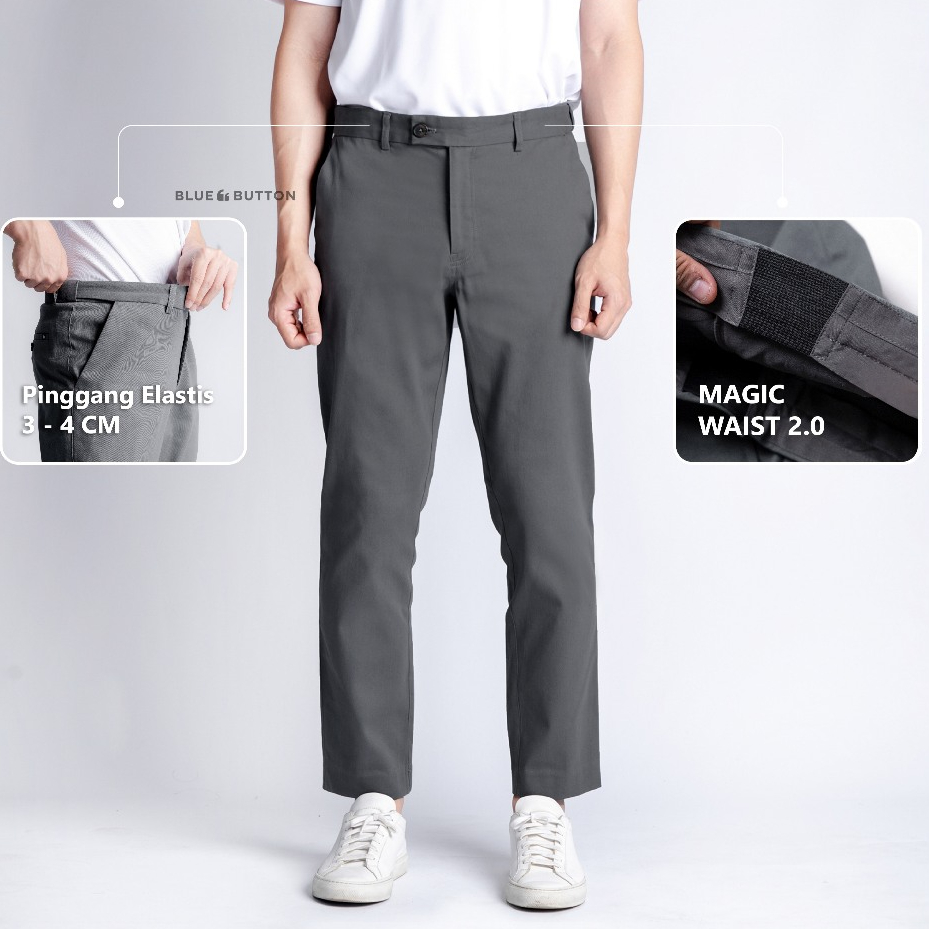 BLUEBUTTON Celana Chino Celana Ankle Pants Slim Fit Light Grey