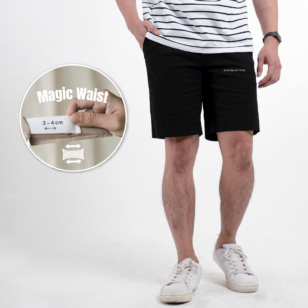 BLUEBUTTON Celana Pendek Pria Hitam Celana Pendek Chino Hitam