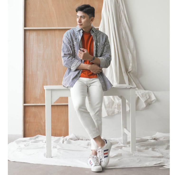 BLUEBUTTON Celana Chino Putih Pria Ankle Pants Slim Fit Ivory White Magic Waist 2.0