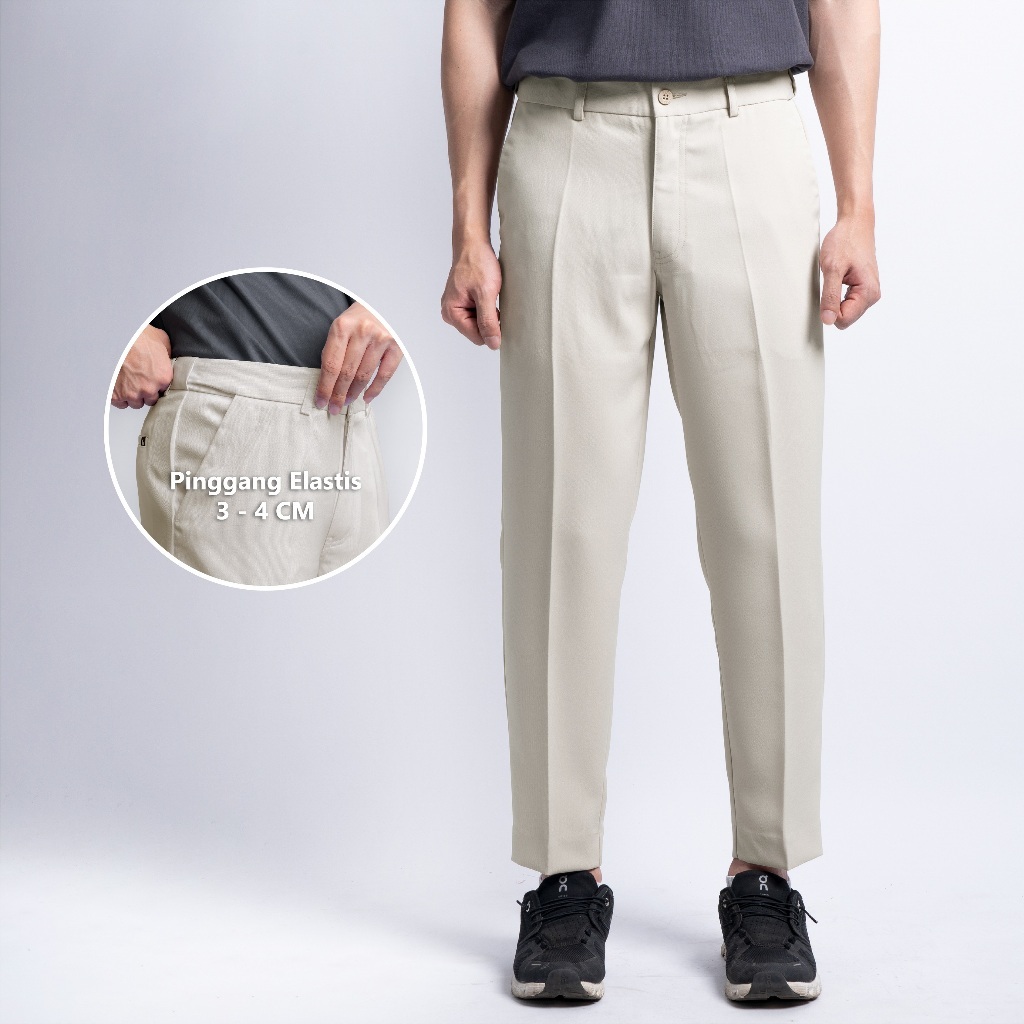 BLUEBUTTON Ankle Pants Air Trouser Celana Bahan Formal Pria Slim Fit Cream