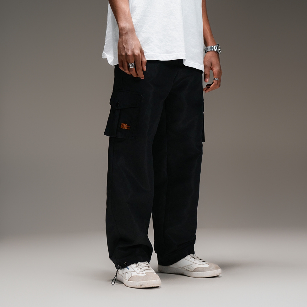 Mickout Fesselnd Cargo Pants - Celana Panjang Pria Taslan Loose Fit - Hitam