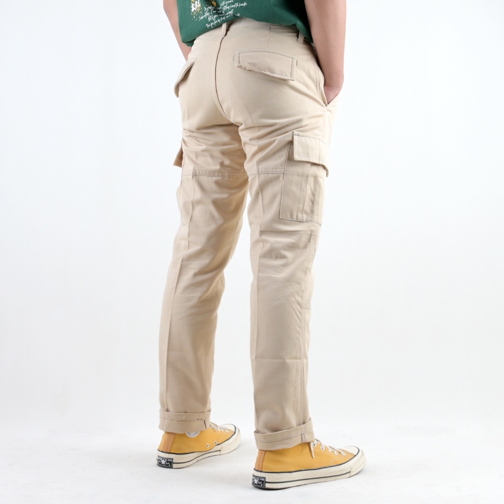 Mickout Slava Cargo Pants - Celana Panjang Pria Rigid Cotton Straight Fit - Cream