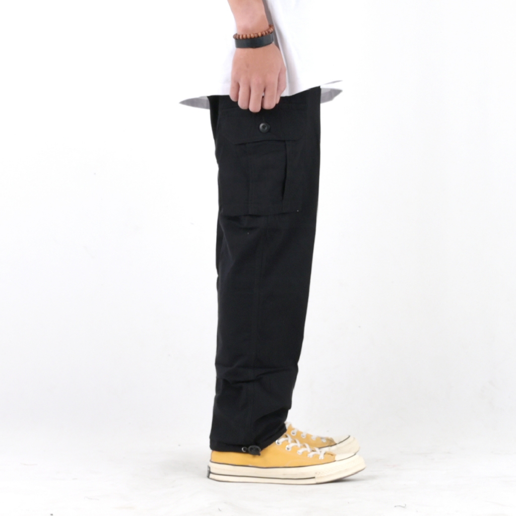 Mickout Hodge Cargo Pants - Celana Panjang Canvas Cotton Relaxed Fit Pria Unisex - Hitam