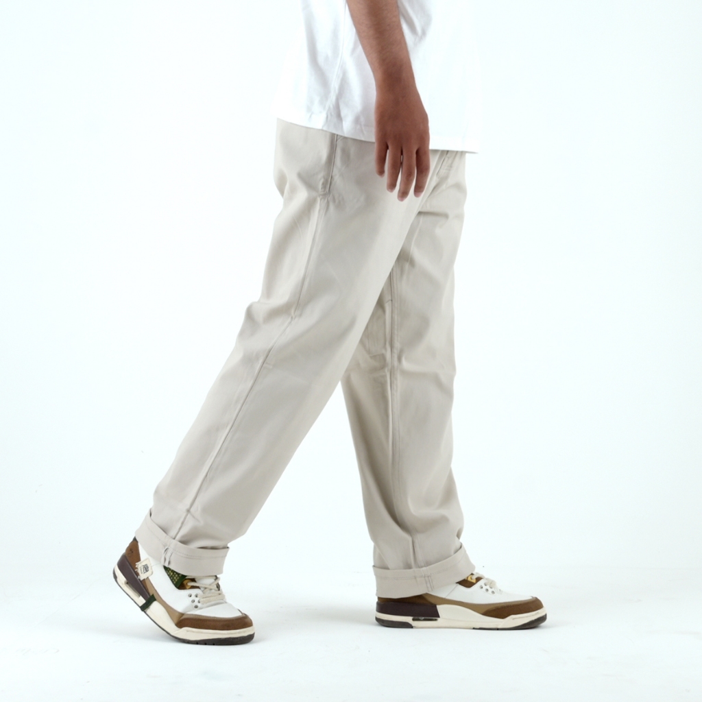 Mickout Wiggy Chino Pants - Celana Panjang Pria Stretch Cotton Loose Fit - Cream