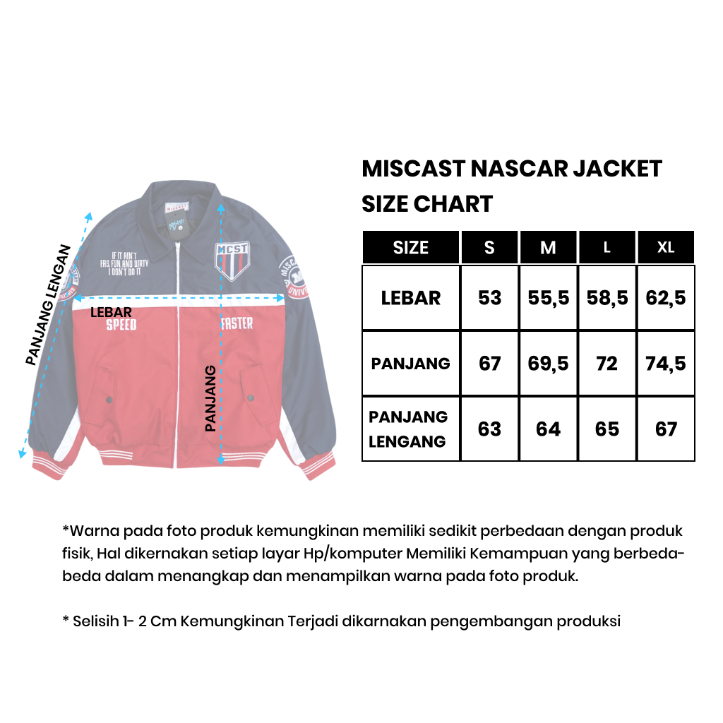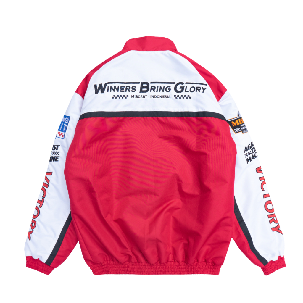 Miscast Jaket Nascar Parasut Pria Vintage Forza Red White Full Bordir