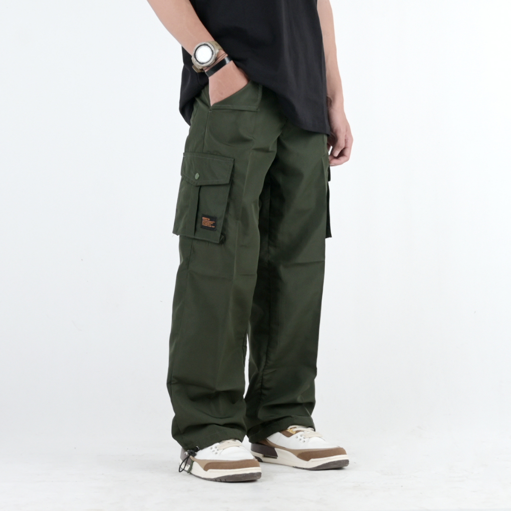 Mickout Fesselnd Cargo Pants - Celana Panjang Pria Taslan Loose Fit - Army