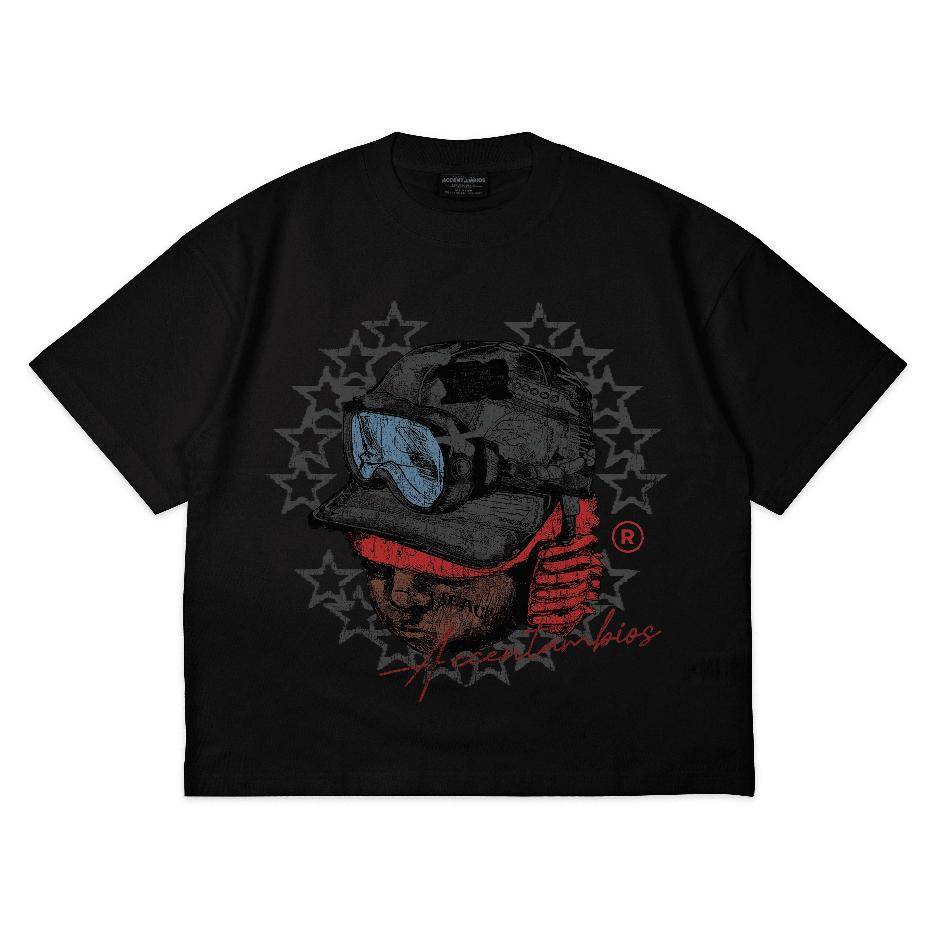 Boxy Oversized T-Shirt Black Hat Black Unisex - Cotton Combed 20s