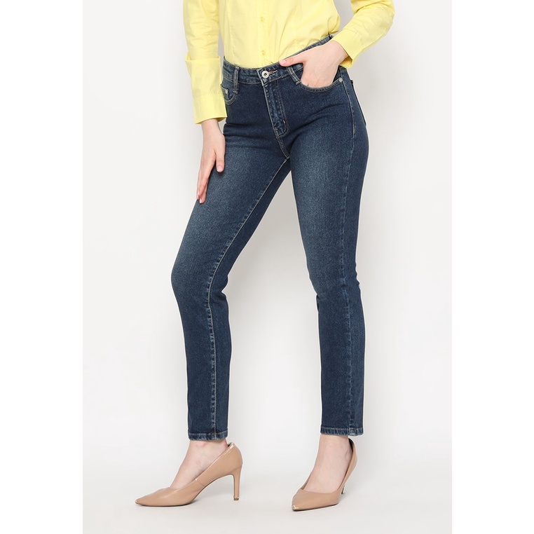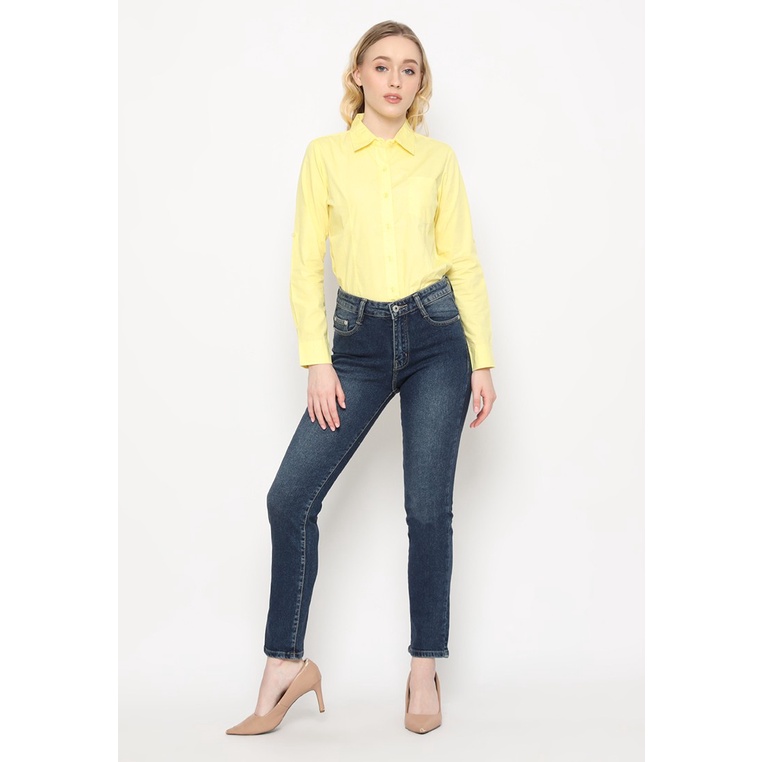 Mobile Power Ladies Straigth Cut Long Pants Jeans - Blue F1403