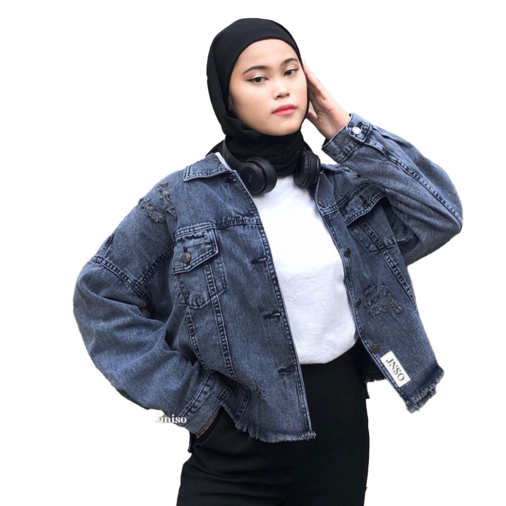 JINISO Ripped Jaket Jeans Oversize Vintage Black Acid