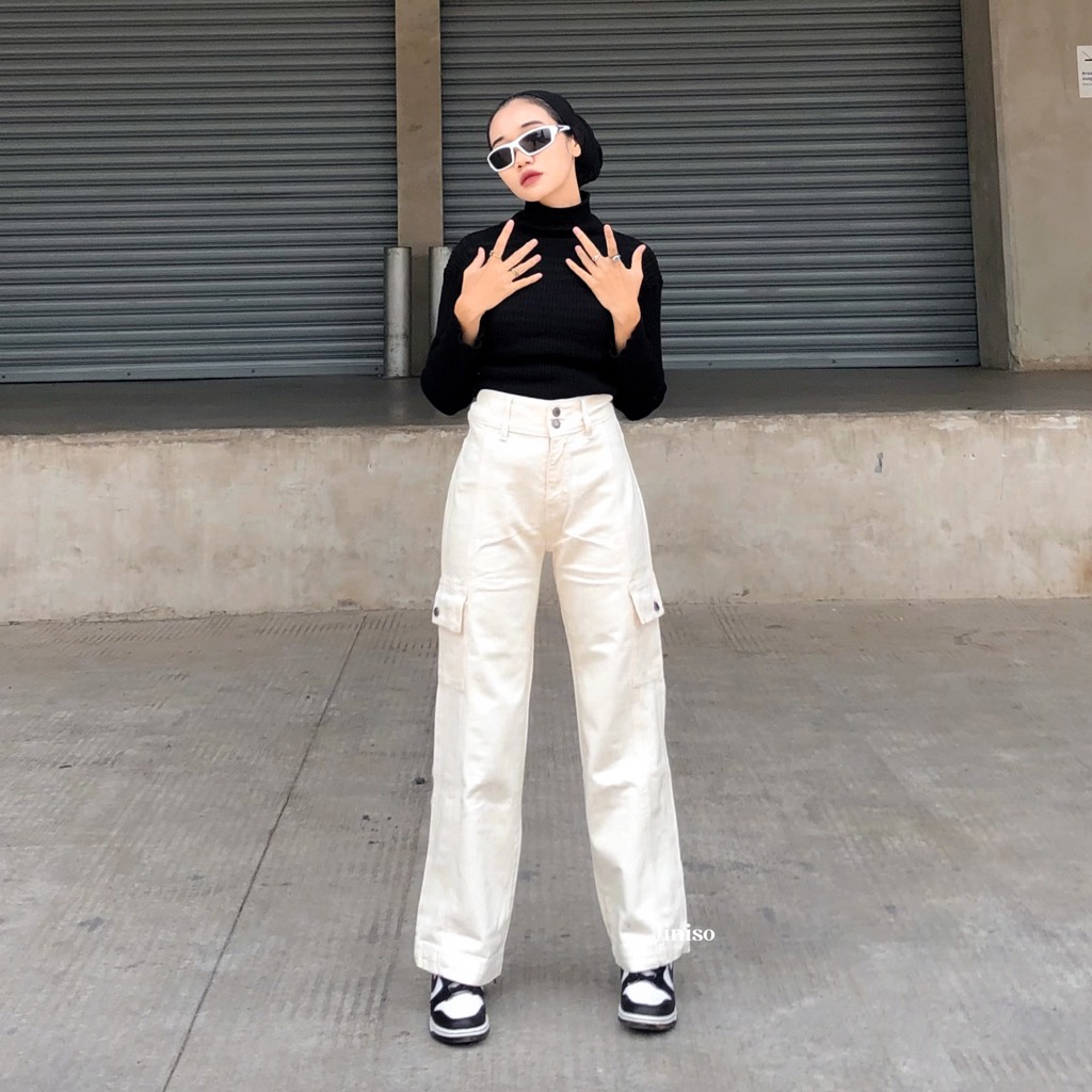 JINISO - Highwaist Cargo Loose Jeans Khaki 403 HANDS UP