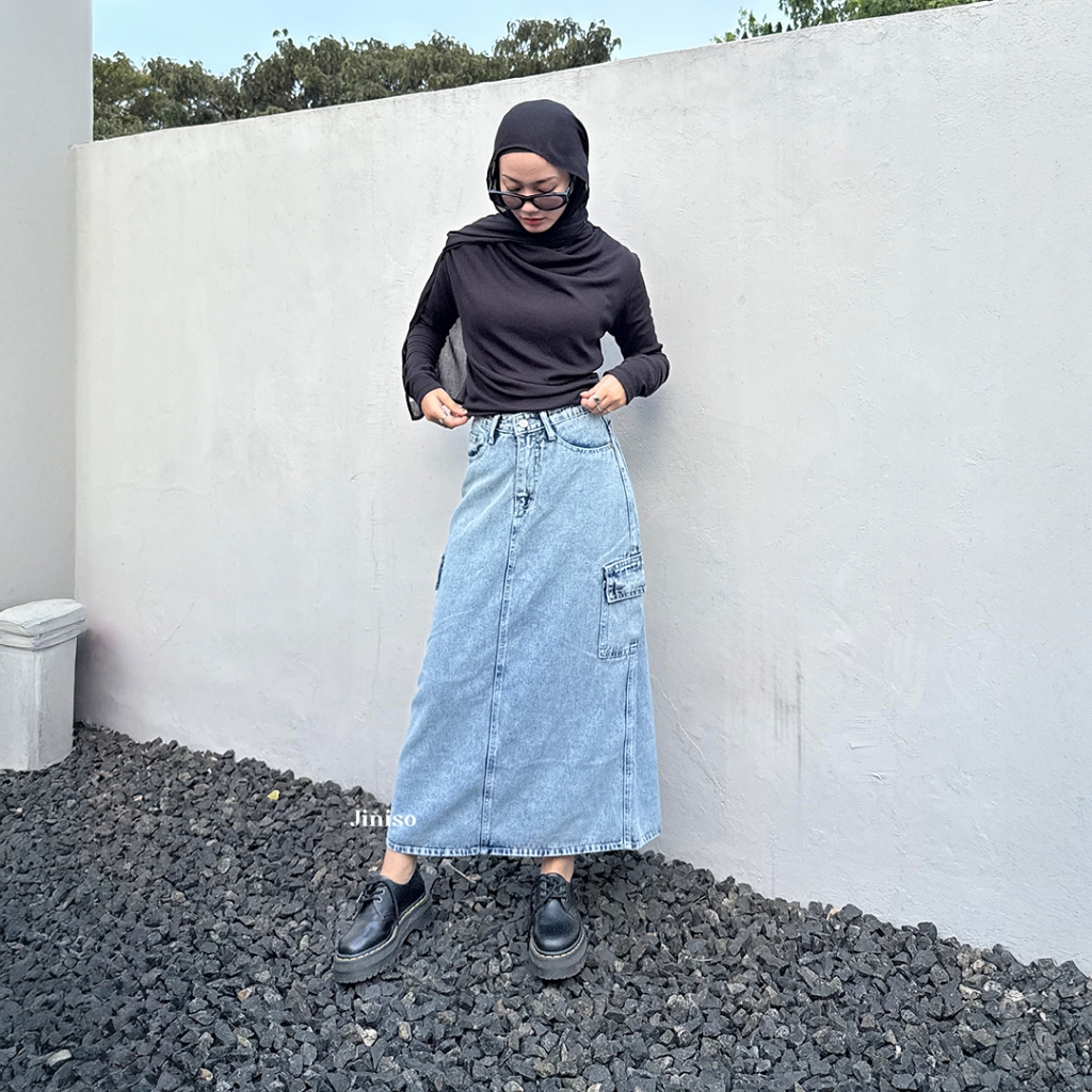 JINISO - Highwaist Rok Cargo Seventy Jeans Panjang