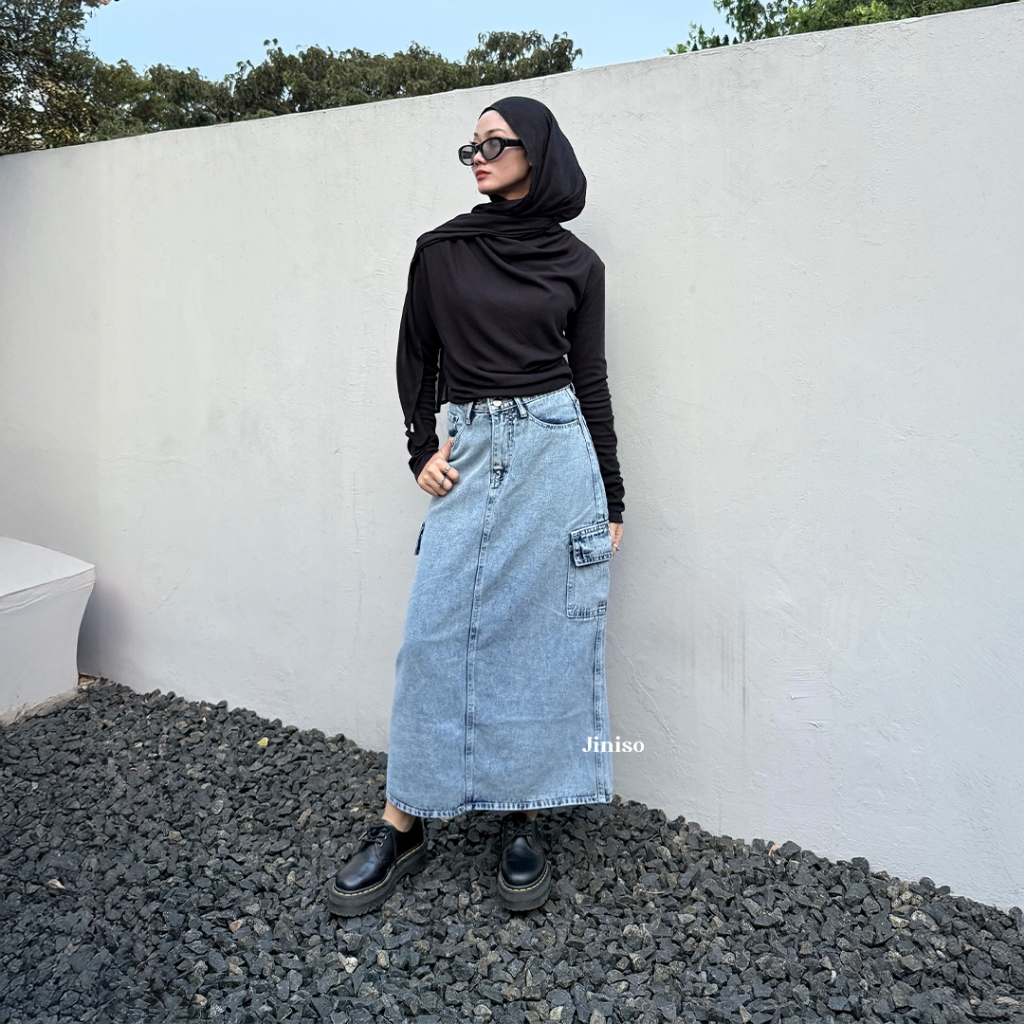 JINISO - Highwaist Rok Cargo Jeans Panjang 983 SEVENTY