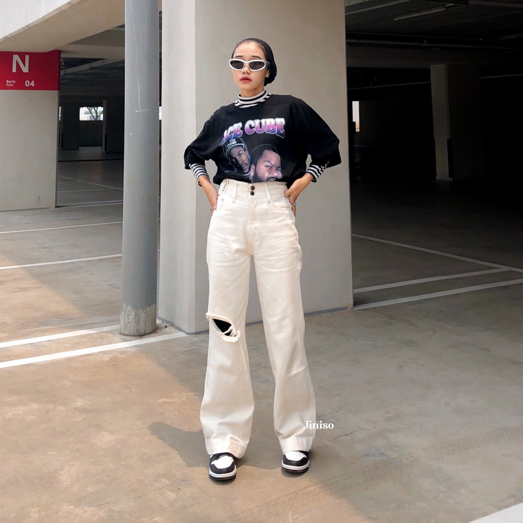 JINISO - Highwaist Baggy Ripped Jeans Khaki 506 MYSTIC GAL