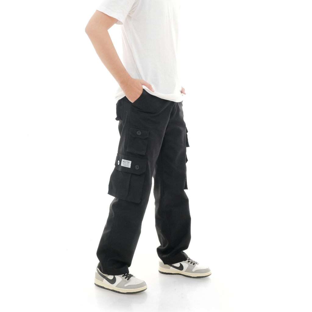 Qwertylife Long Pants Cargo Reguler Twill Pocket Black