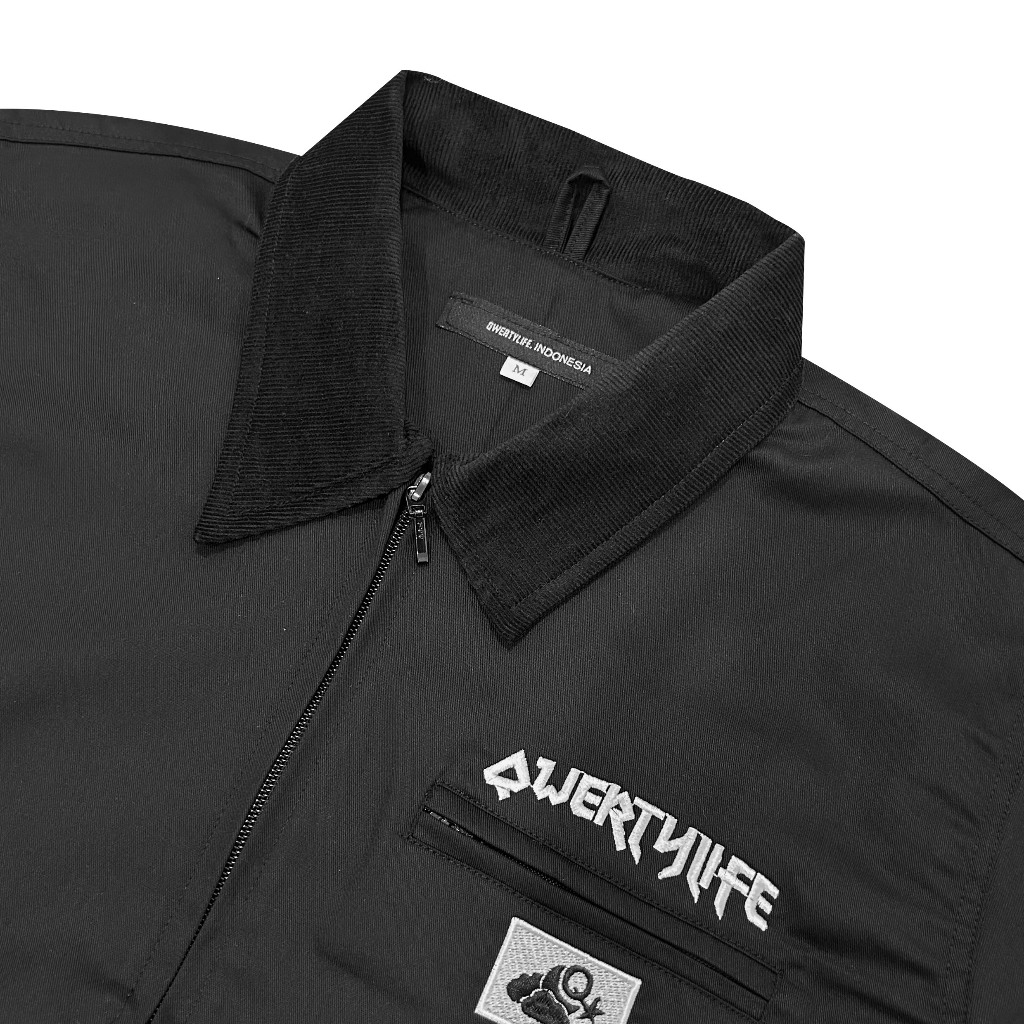 Qwertylife Work Jacket Boxy Fit Cordoray Black
